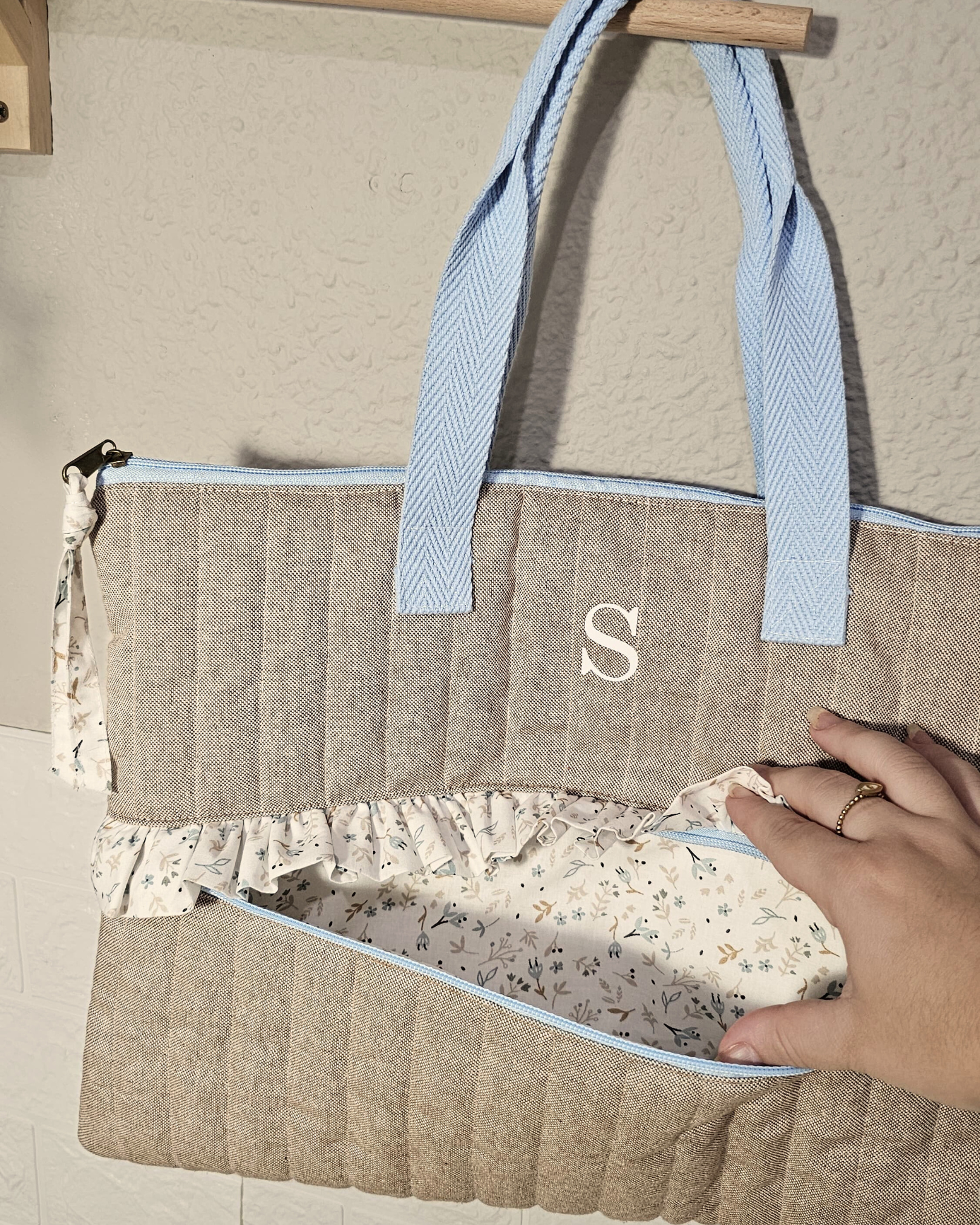Esta funda para ordenador combina un diseño elegante y romántico con un volante delicado en tela de florecitas, ideal para proteger tu portátil con estilo. Cuenta con un amplio bolsillo principal y un bolsillo delantero, ambos con cremallera, que ofrecen espacio seguro para tus accesorios. Las asas integradas facilitan su transporte, proporcionando una solución práctica y sofisticada.