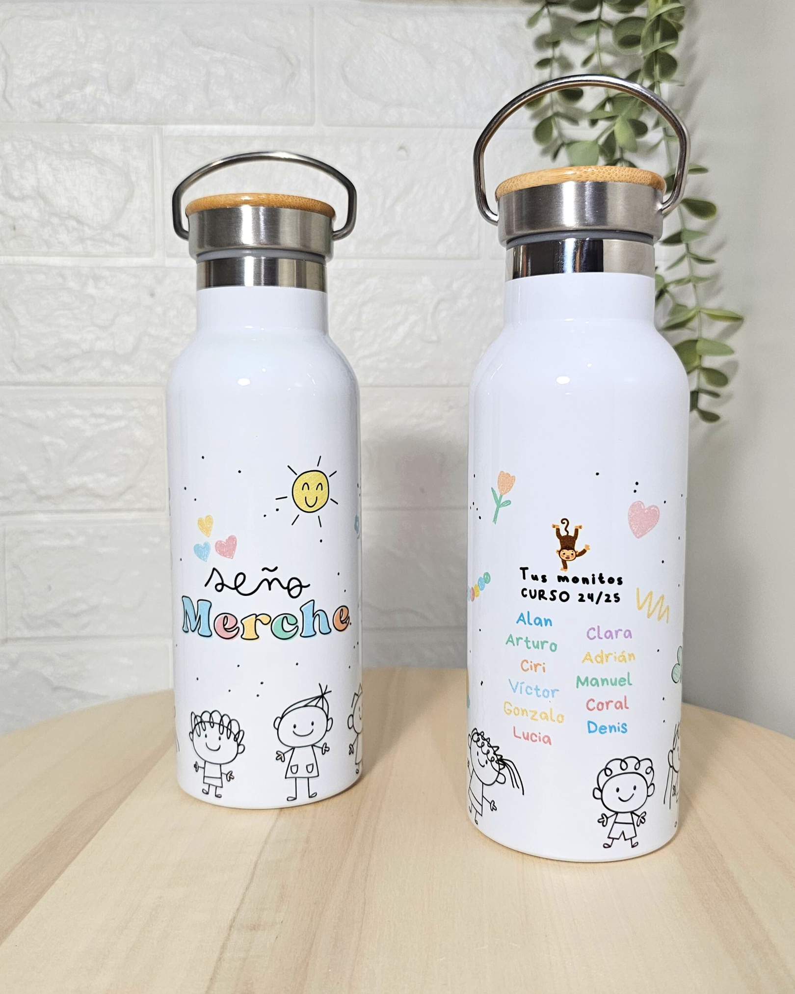 Un regalo único y lleno de significado para esos profes que dejan huella. Nuestra botella térmica de 500 ml, diseñada especialmente para profesores, mantiene las bebidas frías o calientes durante horas y se personaliza al detalle para que sea tan especial como la persona que la recibe.