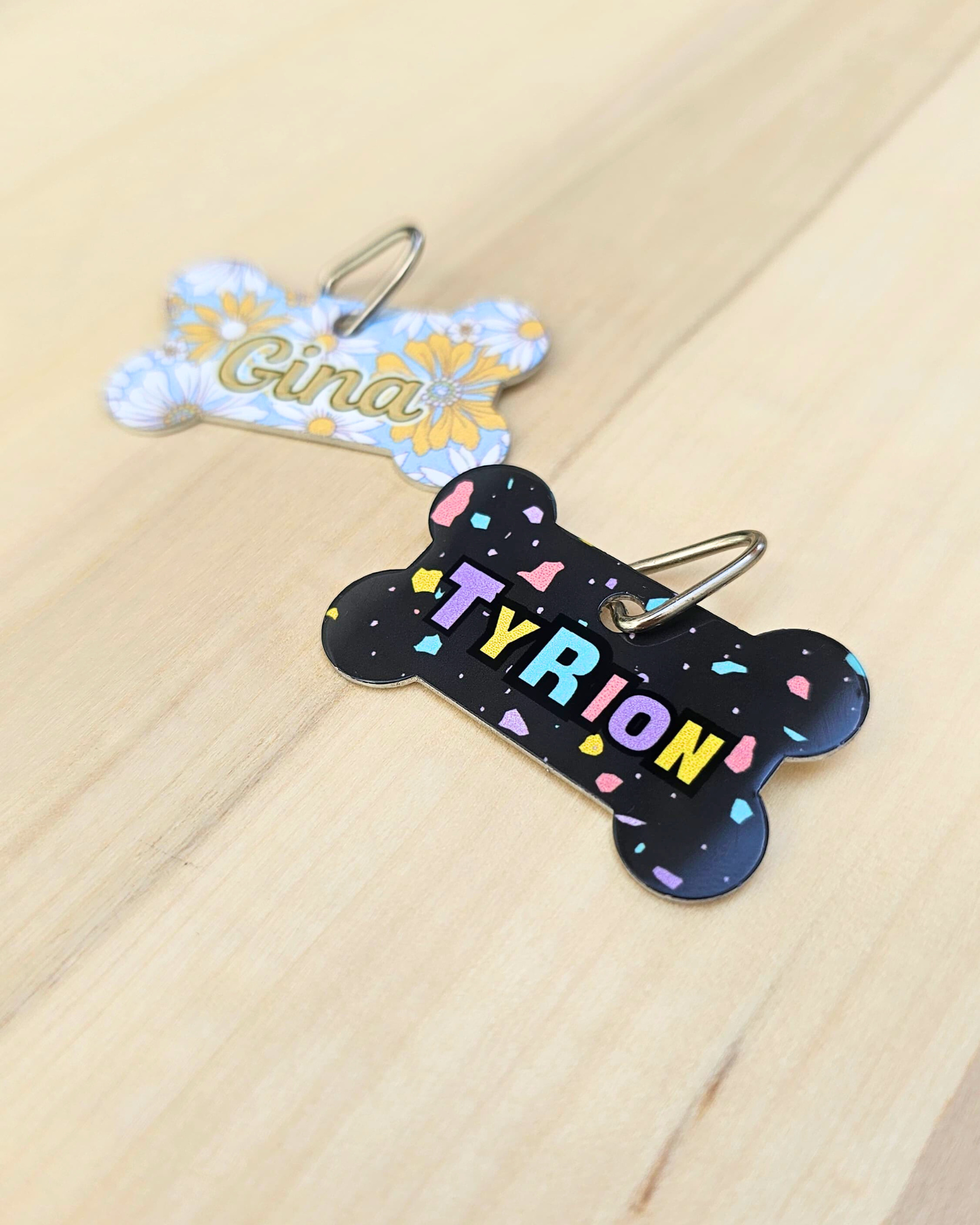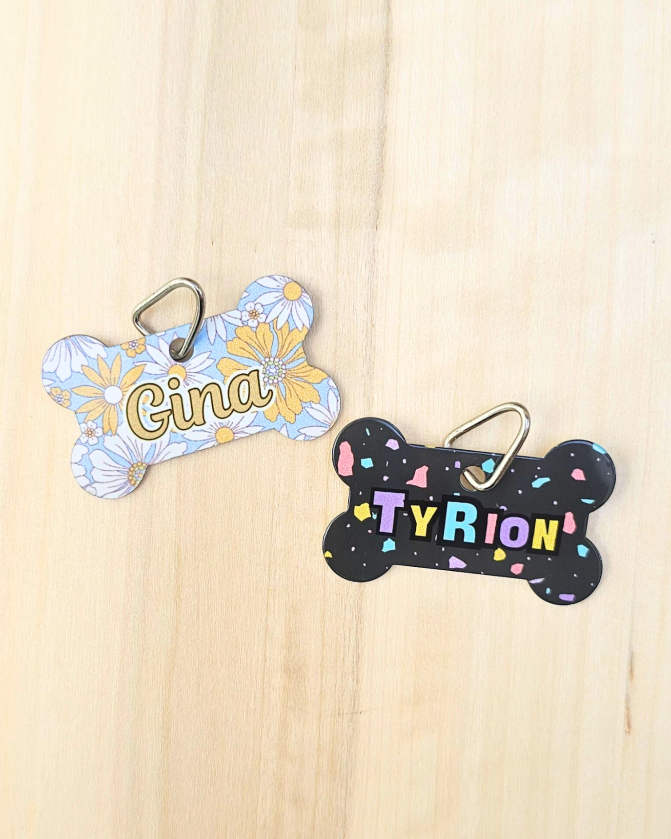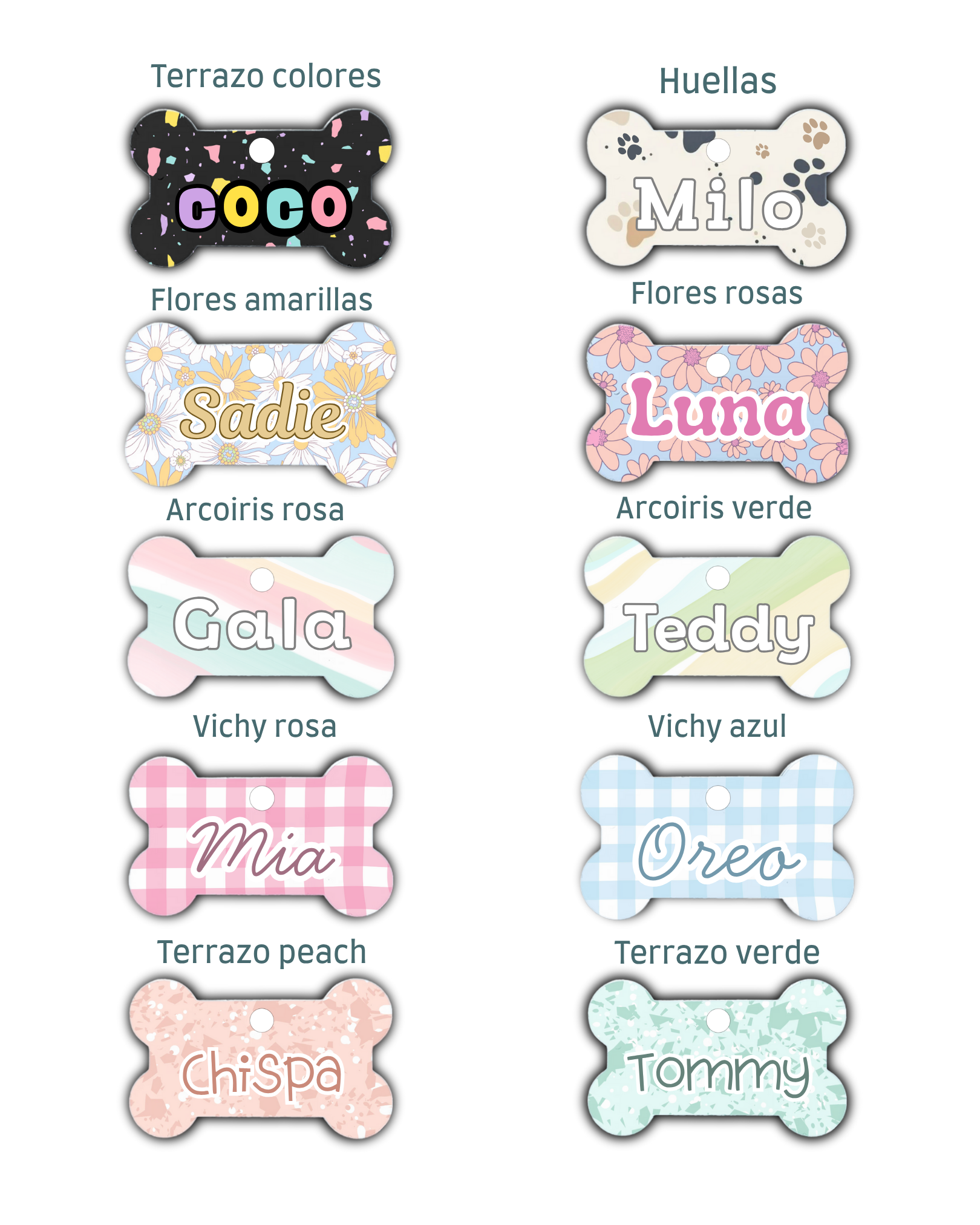 Chapa Identificativa de Aluminio – Forma de Hueso con Diseños Modernos 🐾✨