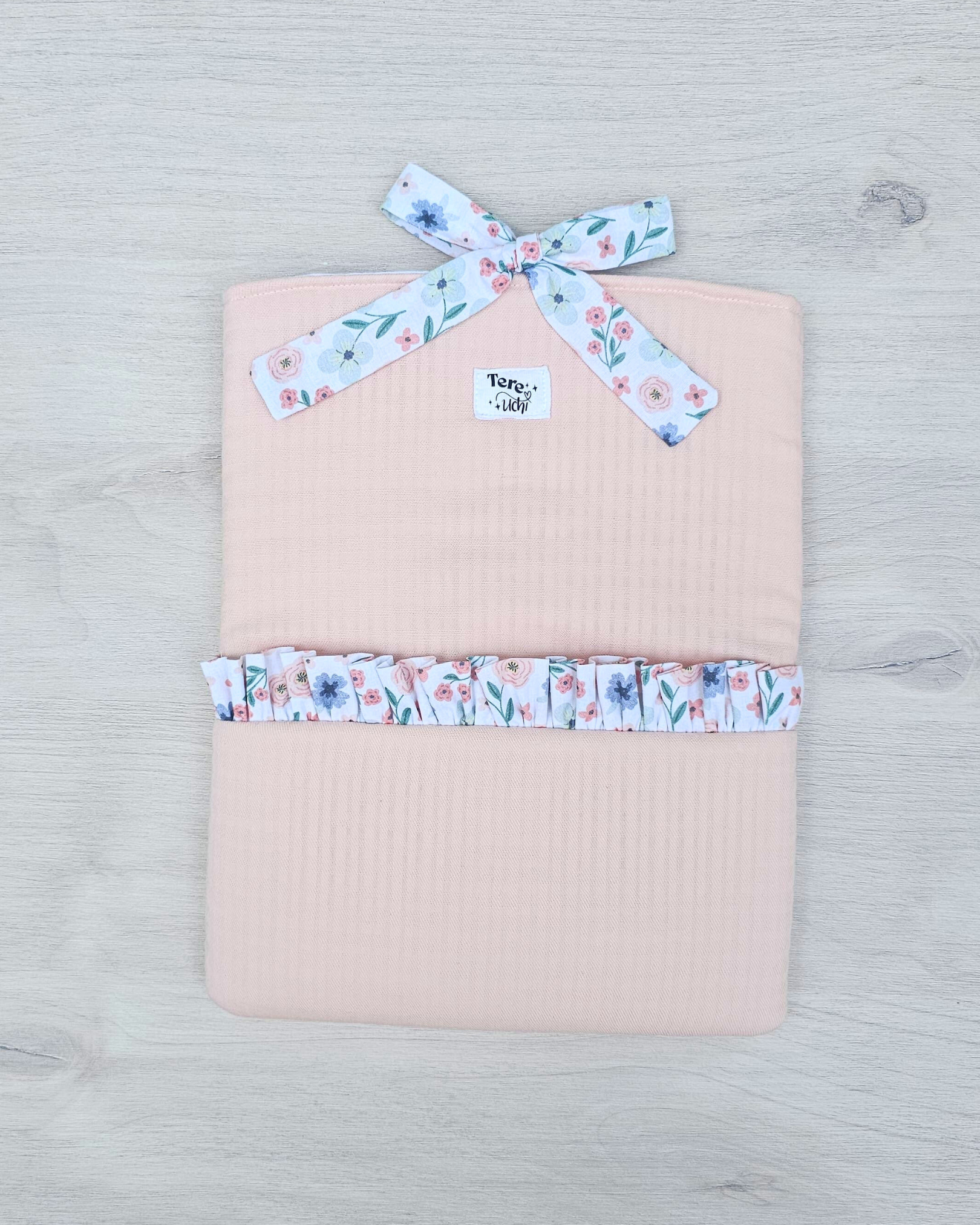 Funda libro grande volantito "flores azules" STOCK INMEDIATO