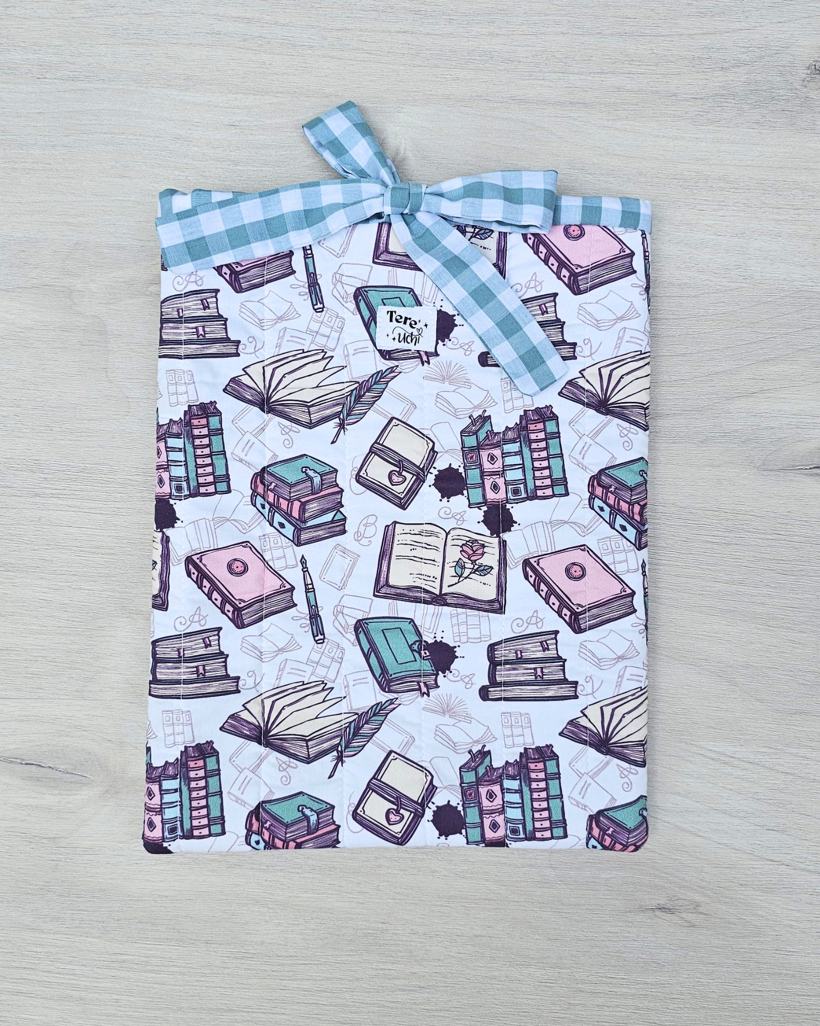 Funda Acolchada para Libro Grande (Tamaño de 24 cm de ancho x 29 cm de alto)– Con Cierre de Lazo 🎀📚