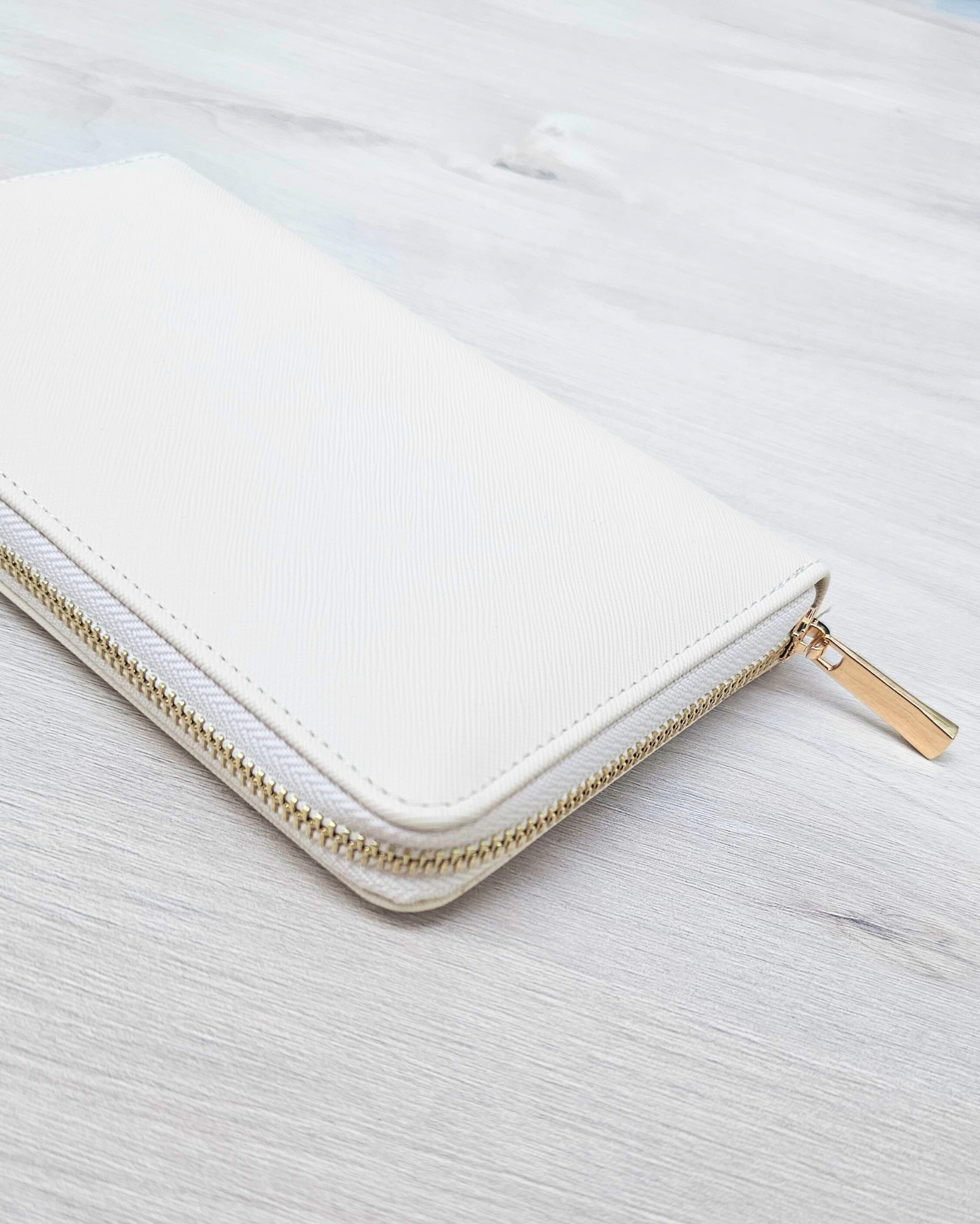 Su cremallera metálica en dorado brillante añade un toque de sofisticación.Diseño compacto y elegante, ideal para viaje o uso diario.