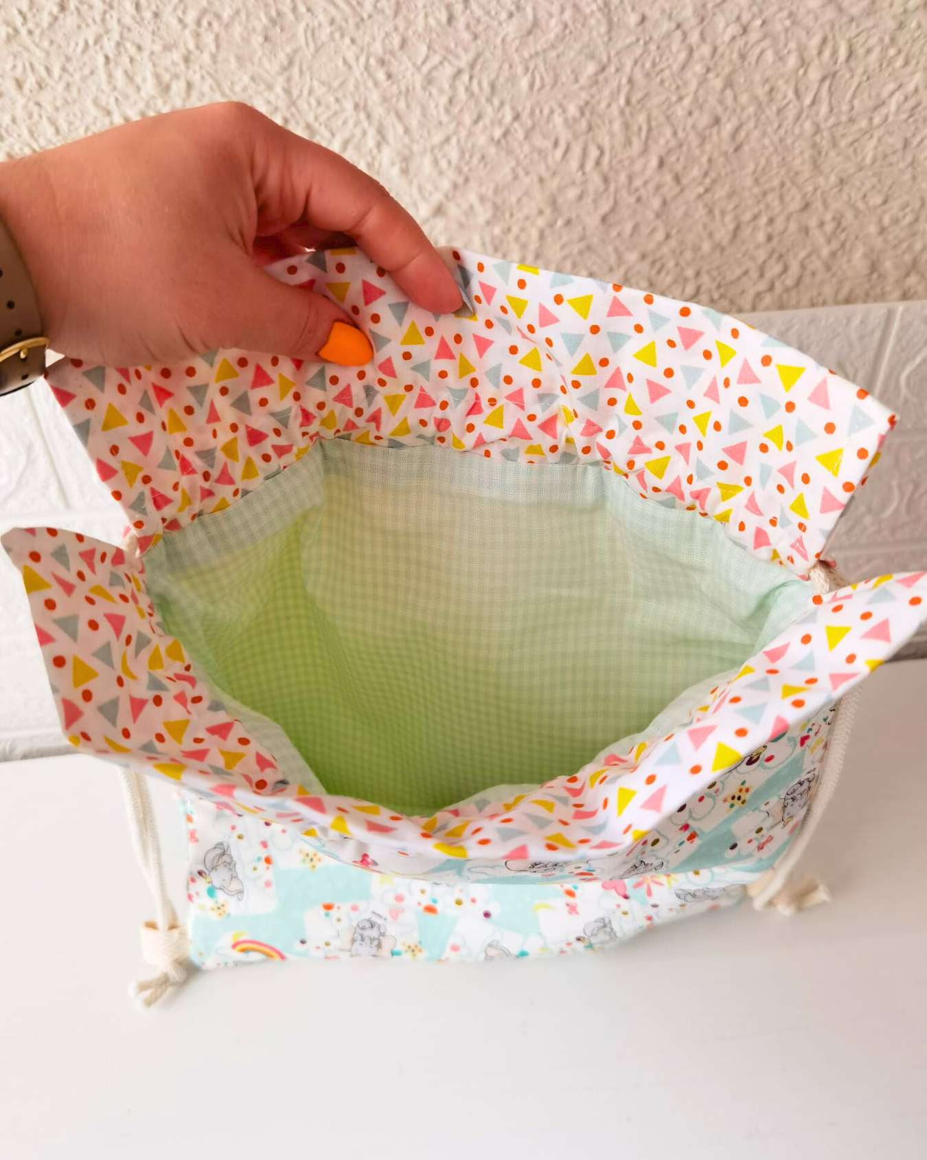 Esta mochila es ideal para que tu peque lleve todo lo necesario, con un diseño divertido donde podéis elegir la combinación de las telas. Además siempre encontrará su mochila fácilmente al ser única y tener su nombre personalizado (Puedes ver los tipos de letras en las imágenes del producto). Es cómoda y facil de abrir y cerrar, gracias a su cierre de cuerdas.