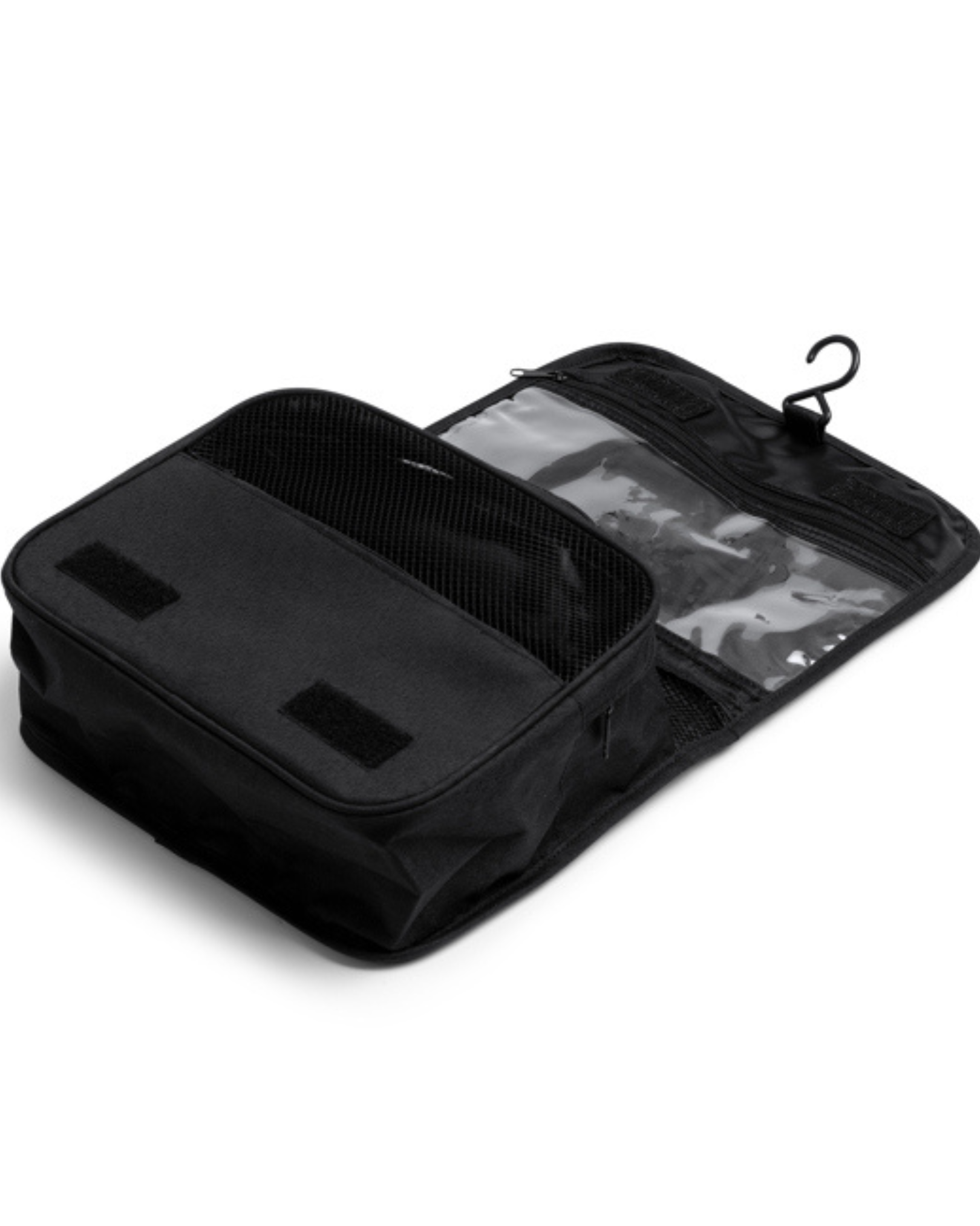 Organiza tus esenciales con este neceser de viaje con múltiples compartimentos. Cuenta con solapa y cierre con cremallera para mantener todo seguro, e incluye un gancho para colgarlo y acceder fácilmente a su interior.