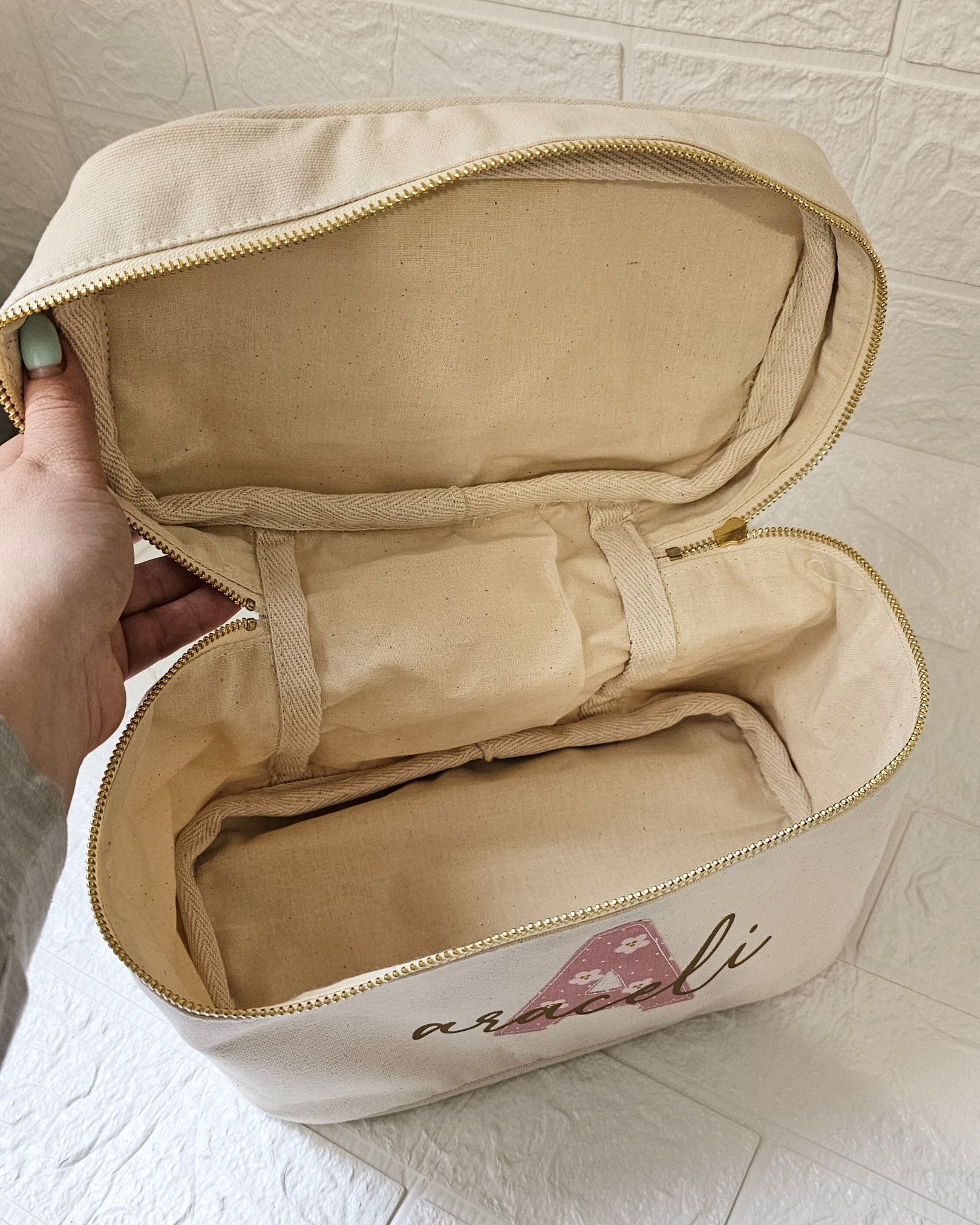 Un neceser tipo cosmetiquera ideal para llevar todo lo que necesitas con estilo. Con un diseño minimalista y elegante ,su gran capacidad lo hace perfecto para maquillaje, productos de cuidado personal o accesorios.