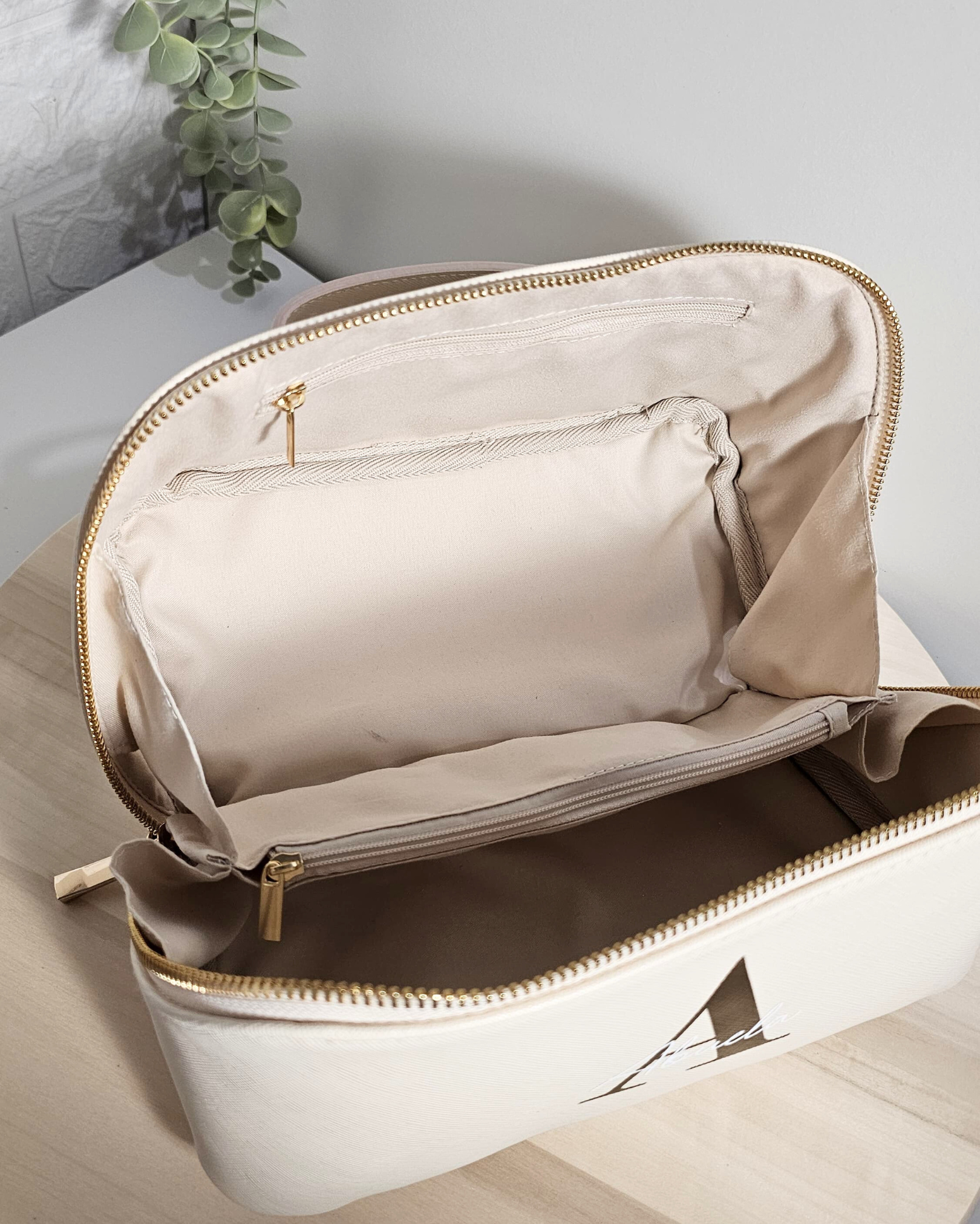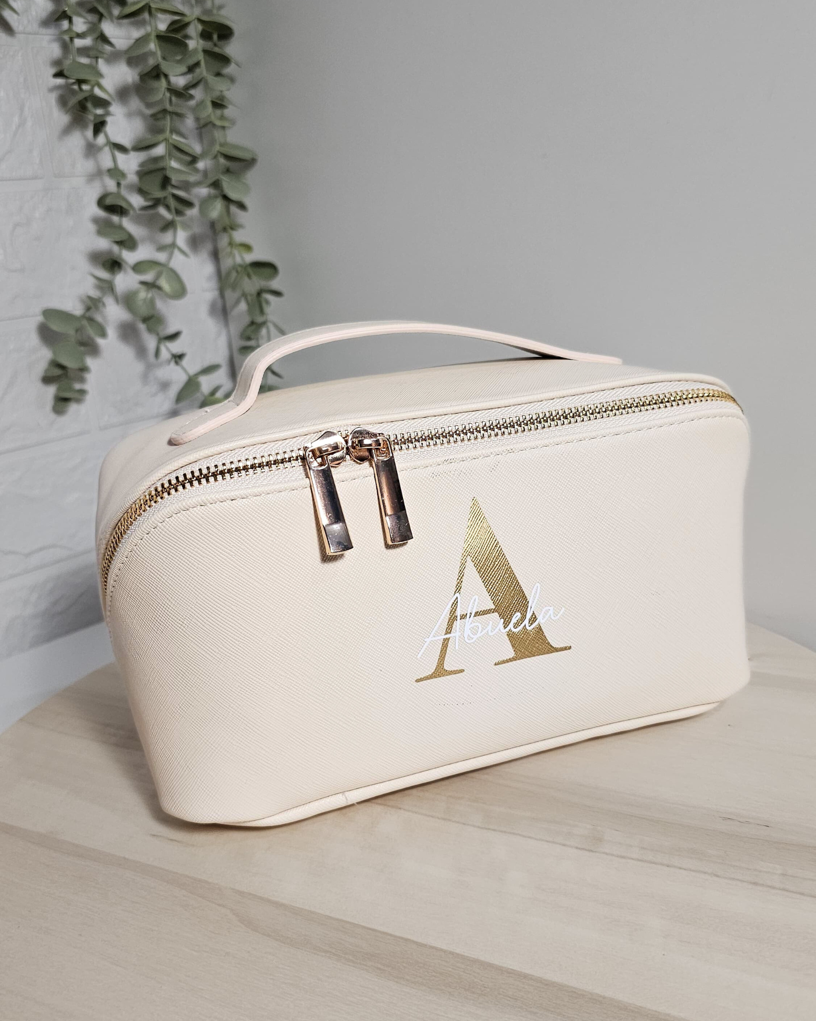 Neceser de gran capacidad, con un diseño elegante, fabricado en polipiel saffiano de alta calidad. Dos bolsillos interiores con cremallera y dos departamentos separados para que puedes tener todo bien organizado.Asa de transporte, perfecto para viajes o acompañarte en tu día a día.