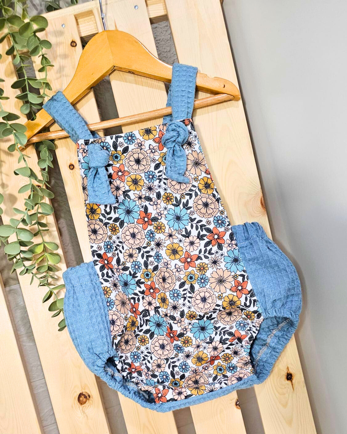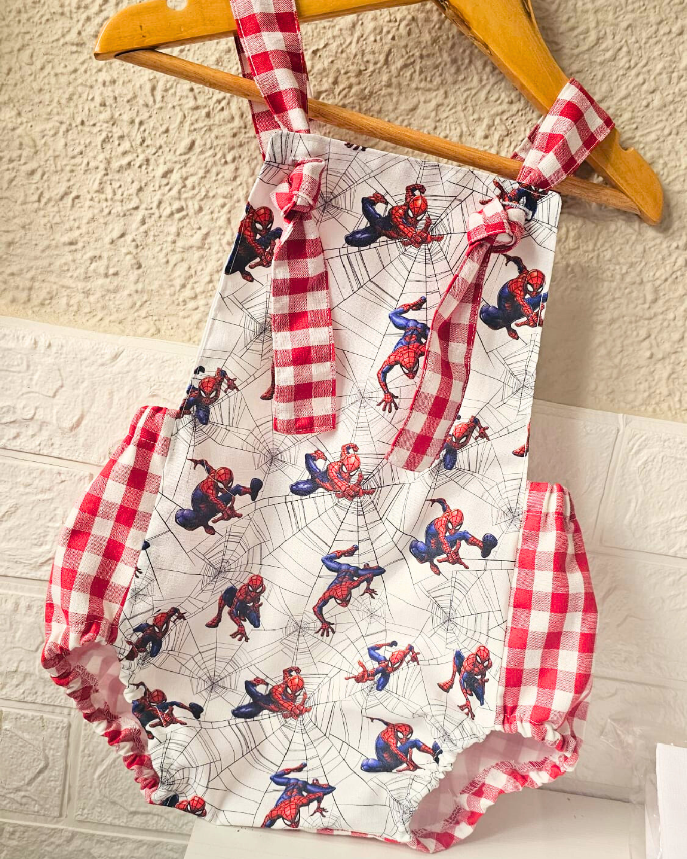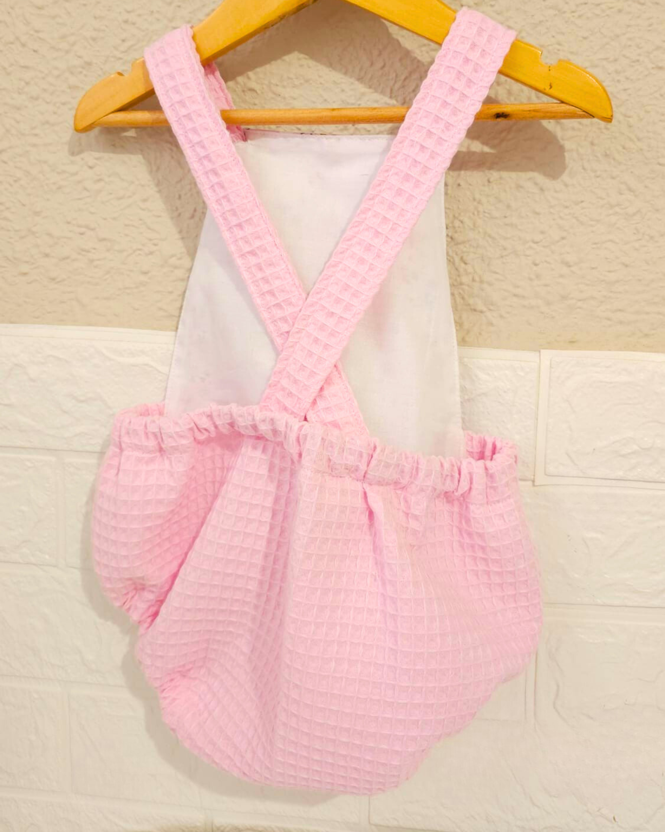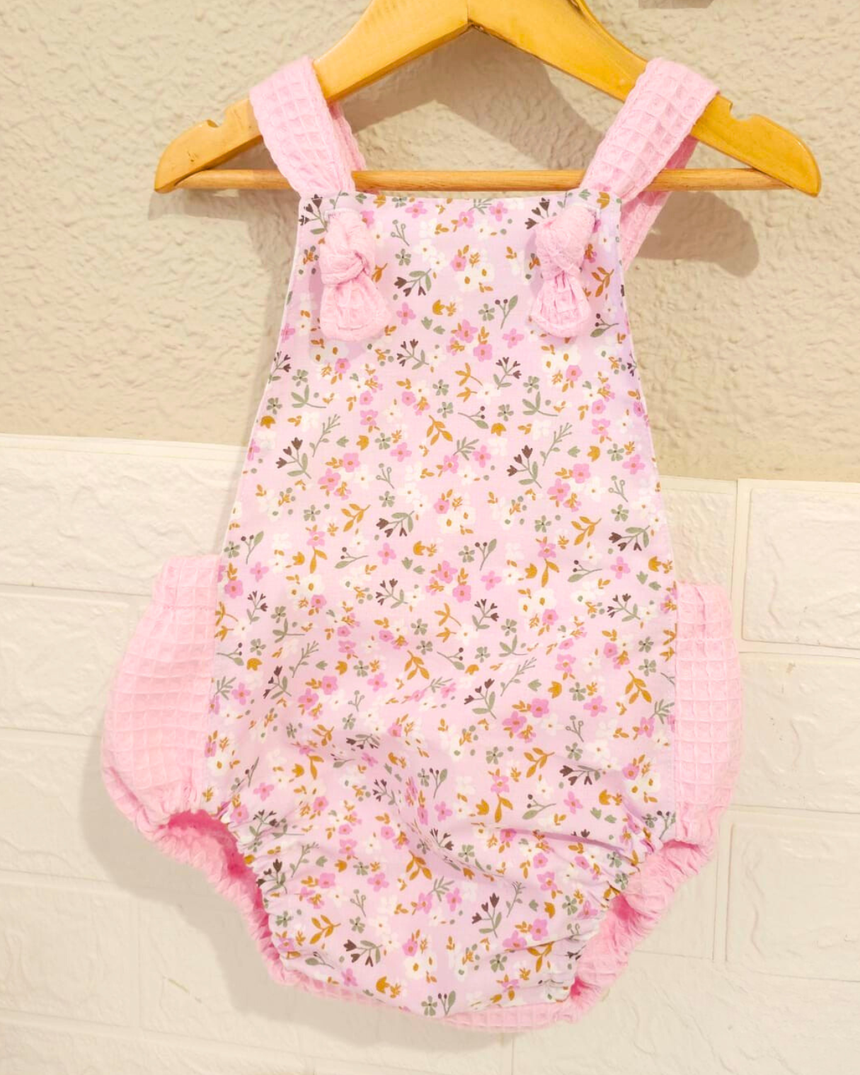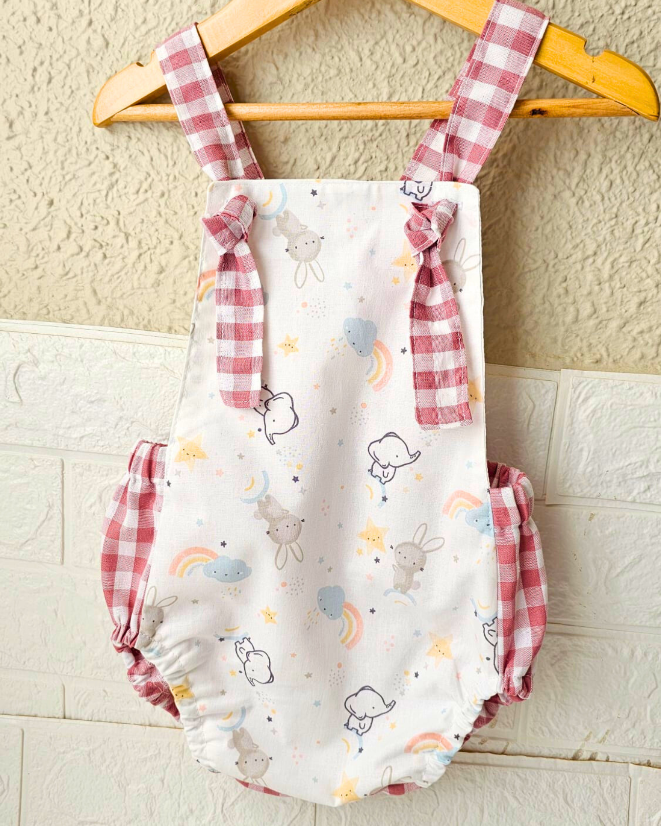 Ranita de bebé confeccionada con tejidos 100% algodón, con tirantes anudados para un ajuste perfecto ¡olvídate de descoser y coser botones!.