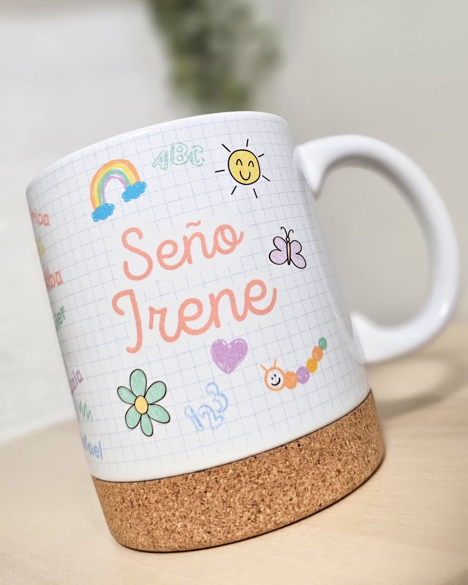 Taza con Posavasos de Corcho – Personalizada para Profesores 🍎✨
