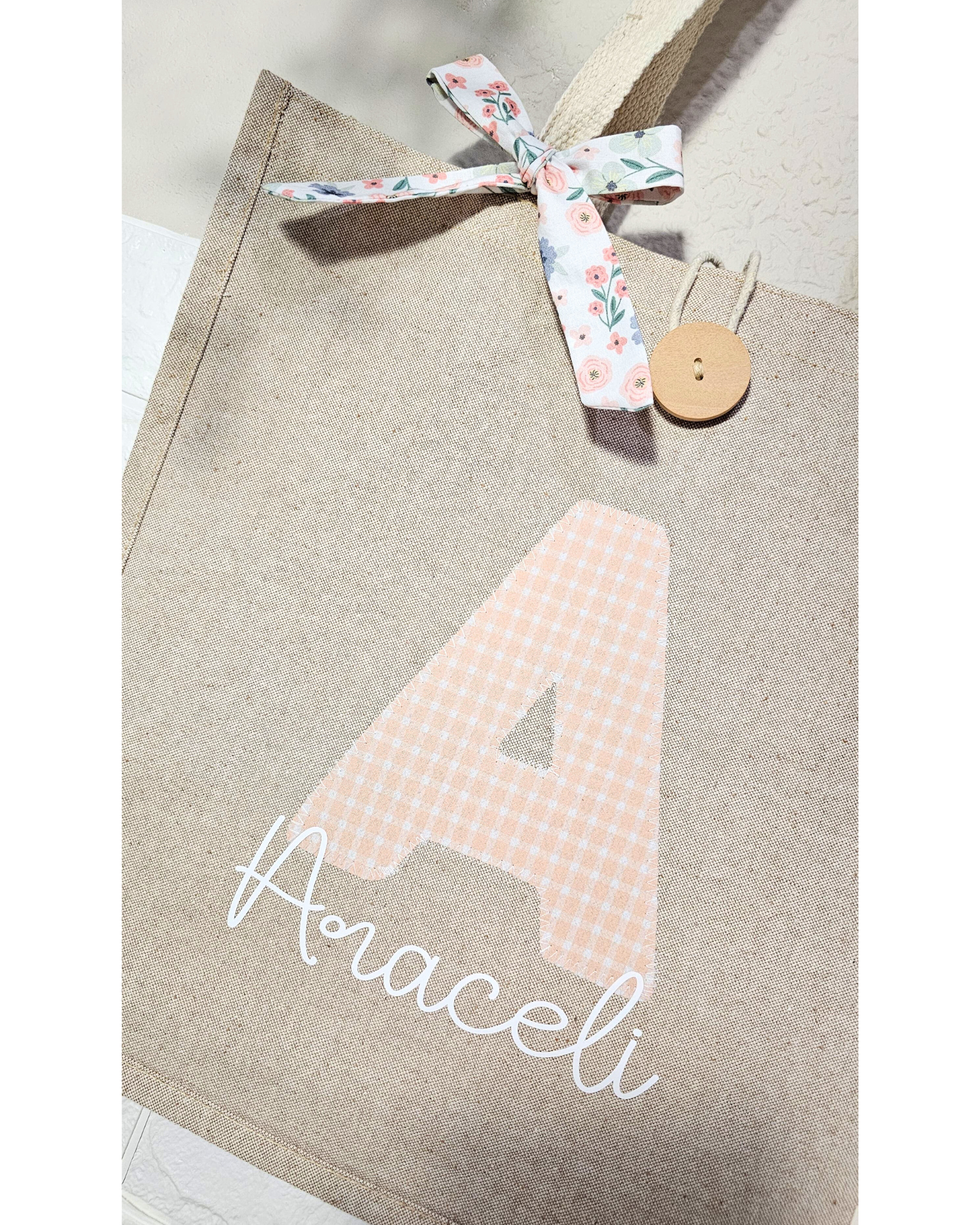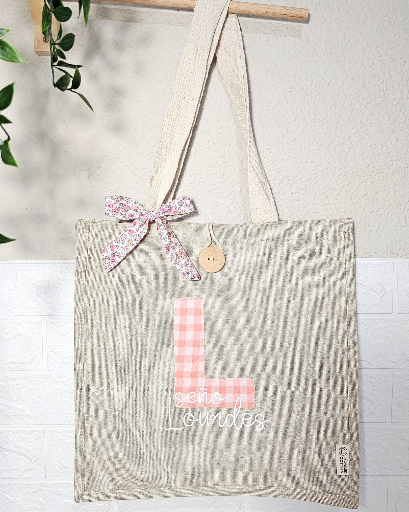 La personalización hace que sea realmente especial: podrás añadir tu nombre (eligiendo entre varias tipografías) y una inicial de tela a tu gusto, combinada con un lazo decorativo que le da un toque elegante y distintivo. Ideal para regalos de profesores (si quieres añadir la palabra "profe o seña etc" debes escribirla junto al nombre)